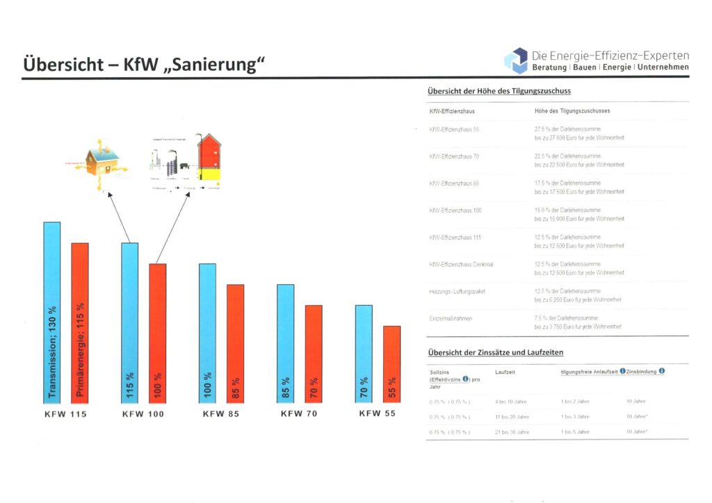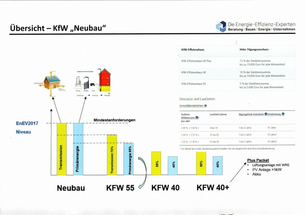 Im gewerblichen Sektor werden Neubauten mit bis zu 5 % der Baukosten gefördert, während bei Sanierungen Zuschüsse zwischen 5 % und 17,5 % möglich sind. Aufgrund der häufig hohen Investitionssummen stellen diese Förderungen einen erheblichen Vorteil dar. Nach unserer Erfahrung können durch die Einsparungen aus den Fördermitteln häufig sowohl ein effizienteres Heizsystem als auch die baulichen Mehrkosten für eine energieeffizientere Gebäudehülle finanziert werden.